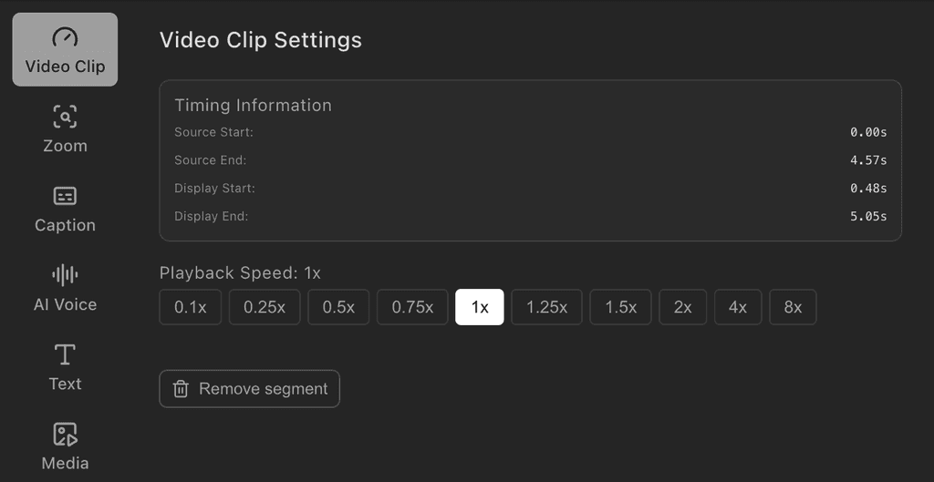The Text panel now shows a segment list, matching the layout of the Zoom and Mask panels for a more consistent editing experience.