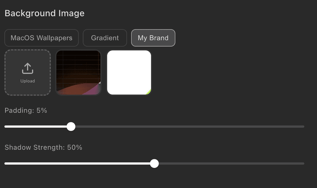 Backgrounds: added an Advanced "Roundness" control and increased default shadow strength for a more polished look.