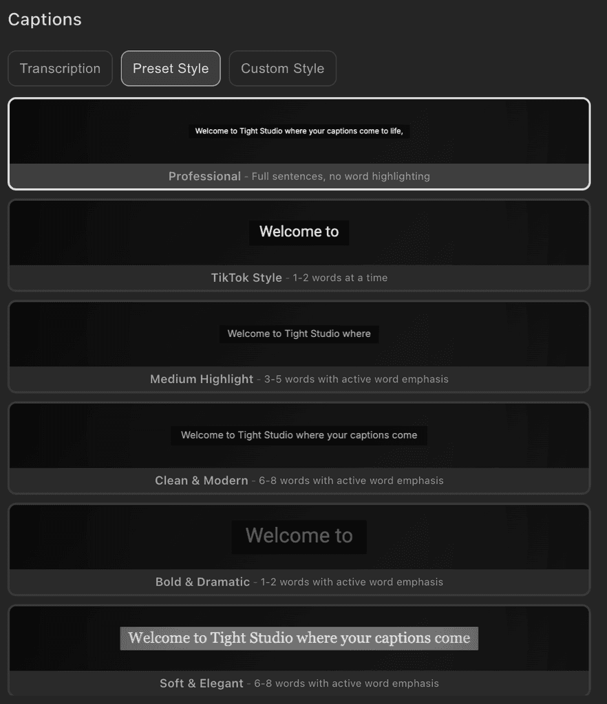 Cleaner layout with better spacing between caption segments