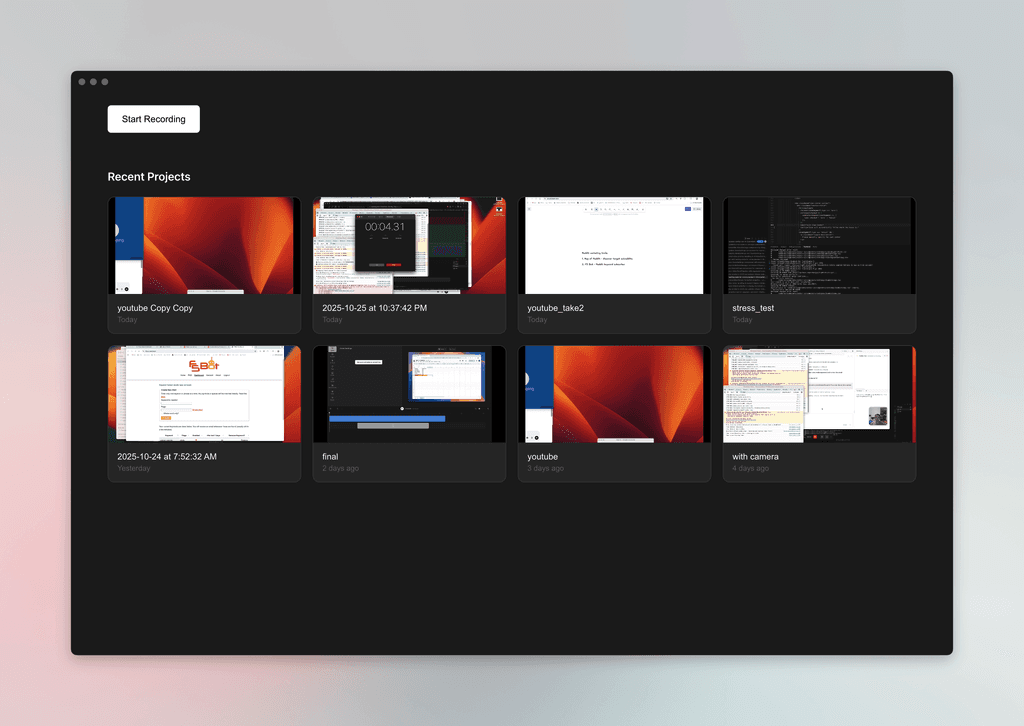 Clicking the macOS "Stop Sharing" button now properly stops the recording and saves your video, instead of hanging indefinitely.
